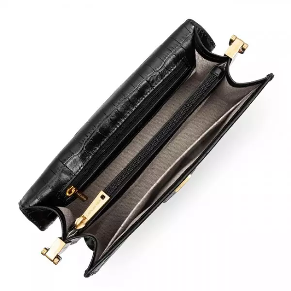 Découvrez le grand sac travers effet croco noir de Lancaster. Le sac Croco Ily noir arbore une forme droite et structurée avec une poignée sur le dessus et une bandoulière amovible pour le porter main, travers ou épaule. Le sac Croco ily noir est le choix parfait pour vous accompagner au quotidien tout en vous apportant élégance et caractère. Le grand sac effet croco noir se présente avec deux compartiments séparés par une poche zippée.