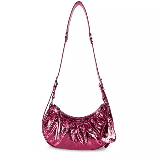 Le petit sac demi-lune vintage et glam rose nacré de Lancaster est la meilleure option. Ce petit sac porté épaule est à la fois chic et résistant. Ce sac en cuir de vachette doré et brillant possède des caractéristiques souples et solides qui pourront vous accompagner pendant de nombreuses années. Il sera remarquable en tant que sac de soirée rose nacré.