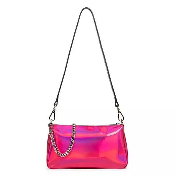 Petit sac trotteur Glass Irio couleur fuchsia. Ce sac à effet irisé est idéal pour être porté en soirée et faire briller votre look. Chic et branché, ce petit sac dispose de tout ce dont vous avez besoin pour une soirée parfaite. Il peut se porter épaule ou travers à l’aide de sa poignée détachable ou de sa bandoulière chaîne amovible. Il dispose d’assez d’espace pour accueillir votre portefeuille, votre mobile ou vos lunettes de soleil. Le sac trotteur Glass Irio Fuxia se veut tendance, coloré et extravagant. Osez imposer votre style et votre énergie avec ce sac de caractère aux reflets irrésistibles.