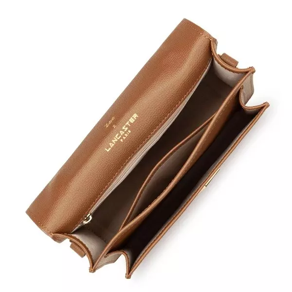 À l’intérieur, vous trouverez deux poches plates. Le sac à main Lancaster Zoé camel dispose d’un rabat géométrique qui fait son succès. Le sac collaboration Zoé x Lancaster Reviva se porte main, travers ou épaule en toute simplicité grâce à sa bandoulière amovible et réglable.