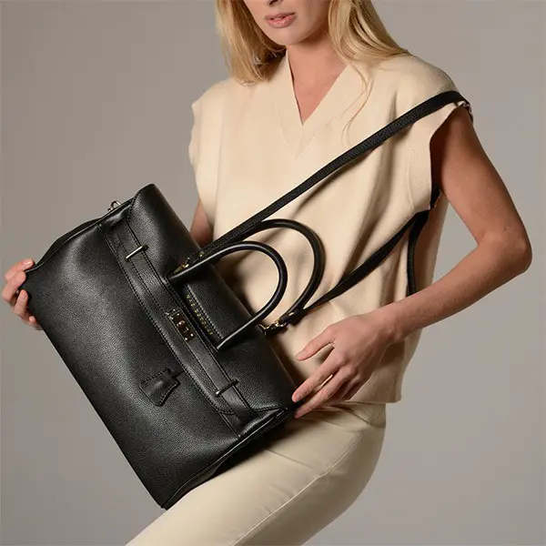 Ses 2 anses courtes permettent un porté main et la bandoulière ajustable et amovible est parfaite pour un porté épaule ou croisé.