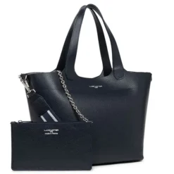 Lancaster – Grand Sac à Main Foulonne Double Bleu Foncé/Argent