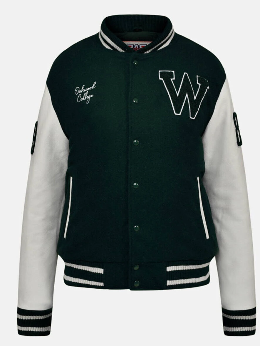 Toujours tendance avec cette coupe style Teddy collège en bi color. Vous avez le corps en tissu 70 % laine + 30 % acrylique et les manches en cuir véritable . C’est une coupe slim, vous avez une fermeture centrale à pressions. On retrouve un petit col officier en bord côte , le bas de manche et la taille sont aussi en bord cote resserré. Vous avez deux poches biais sur l’avant et des poches intérieures. Le blouson est entièrement doublé en polyester . Vous avez des broderies pour renforcer son look collège sur la haut des épaules et sur la poitrine. Comptez une longueur corps de 67 cm sur une taille M .