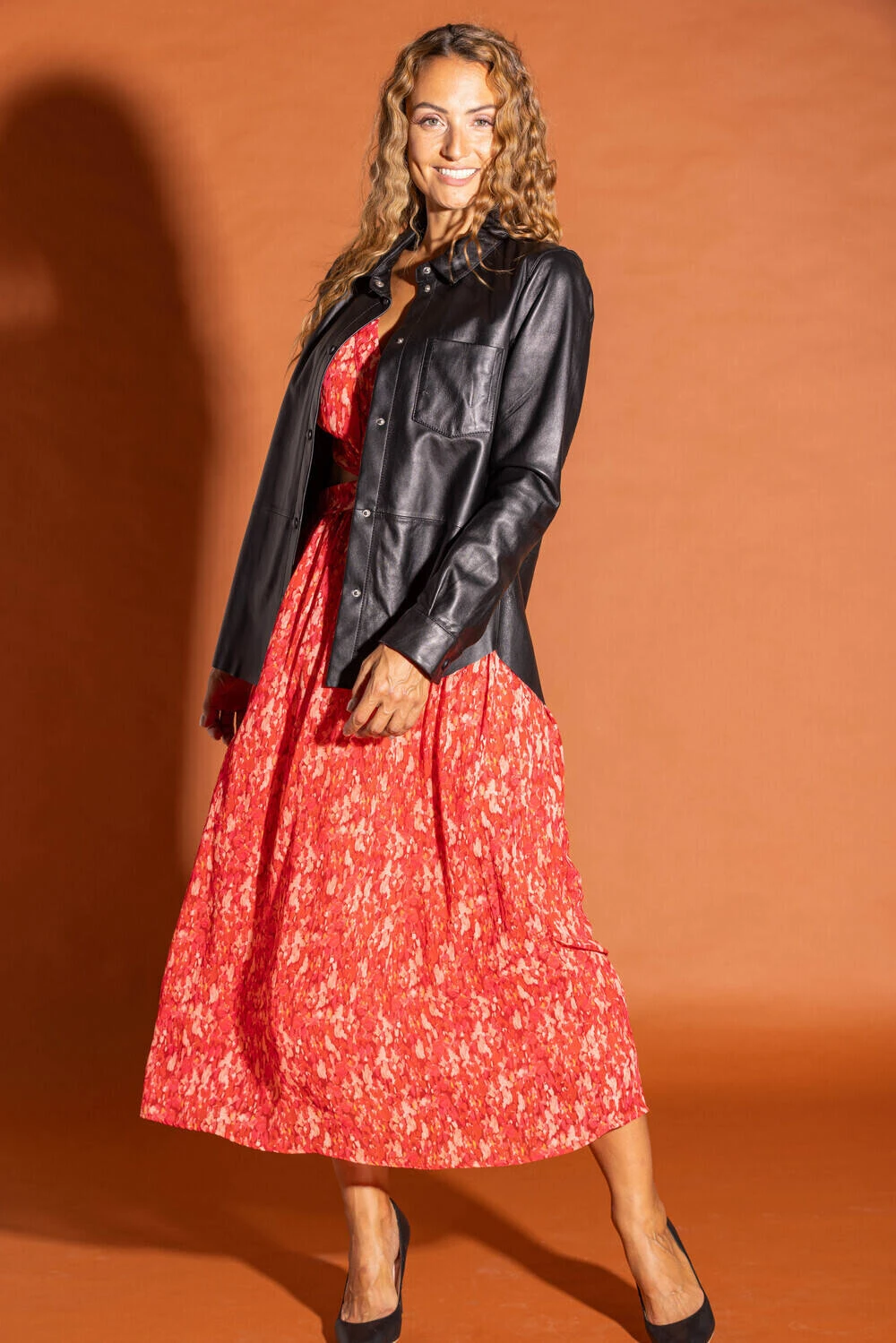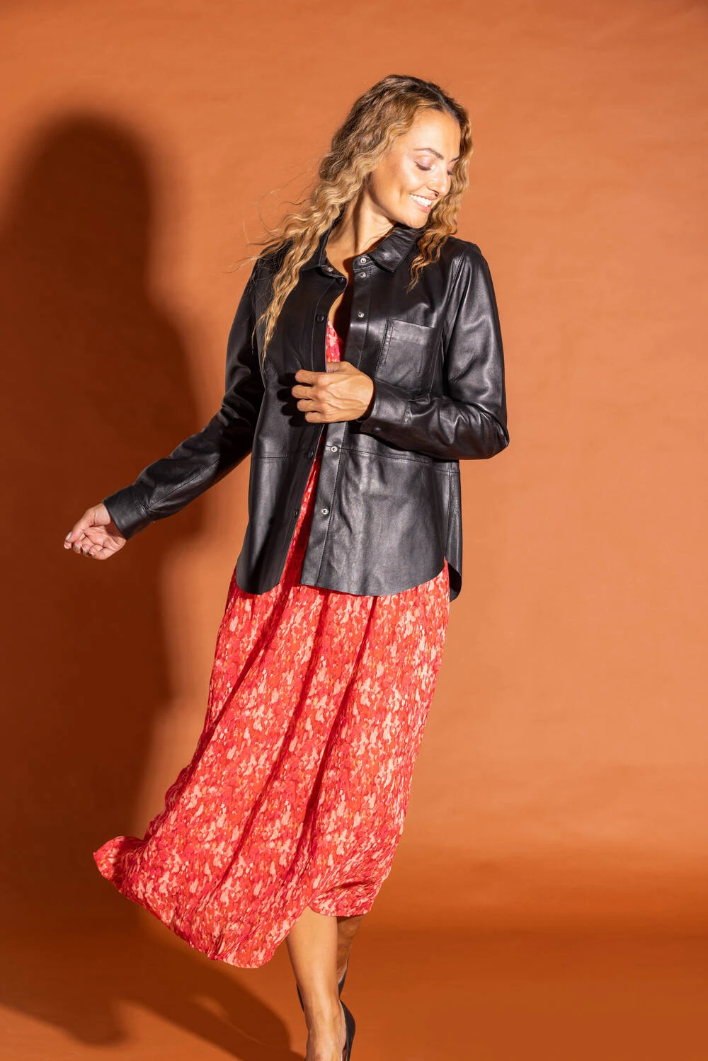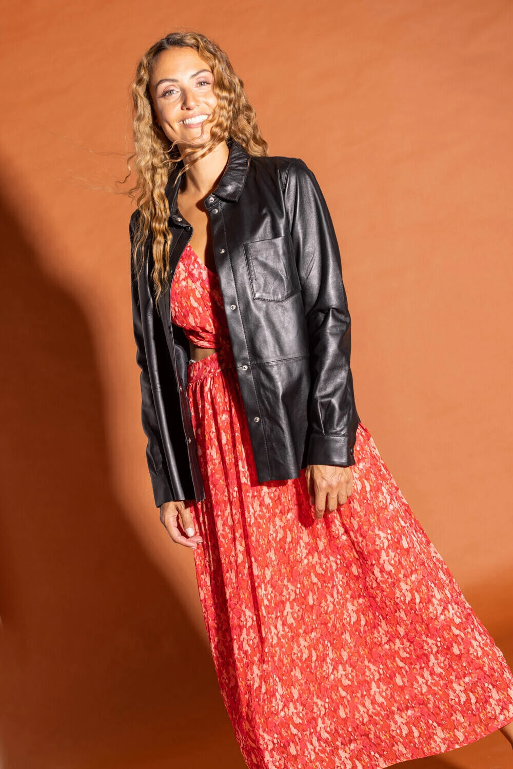 Entrez dans la tendance en craquant littéralement pour cette chemise en cuir véritable ! Son cuir est d’une extrême douceur et d’une souplesse incomparable. Cette chemise est originale par sa matière, dans une forme basique avec son col chemise, sa fermeture à petits boutons, sa poche poitrine plaquée et ses fentes d’aisance à bouton aux poignets. On lui retrouve une doublure en polyester .