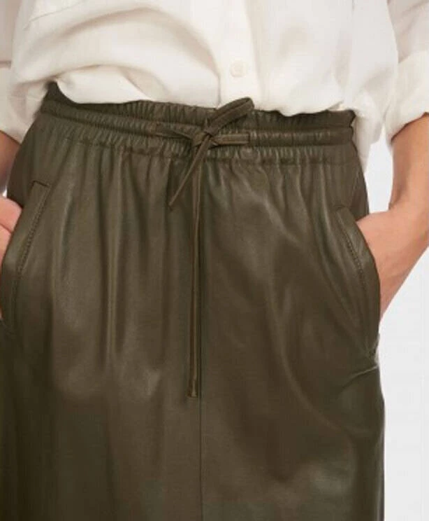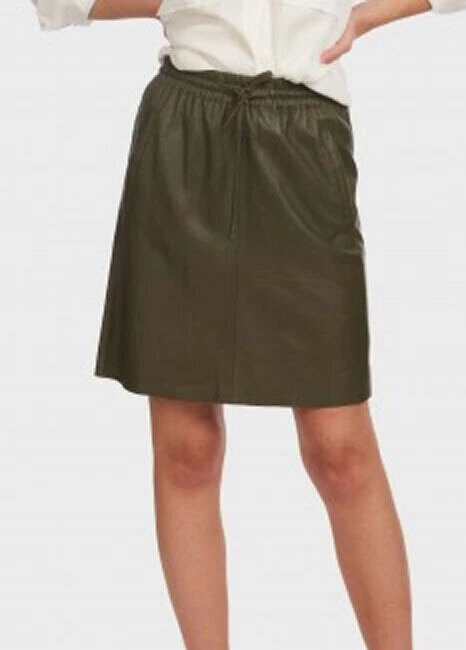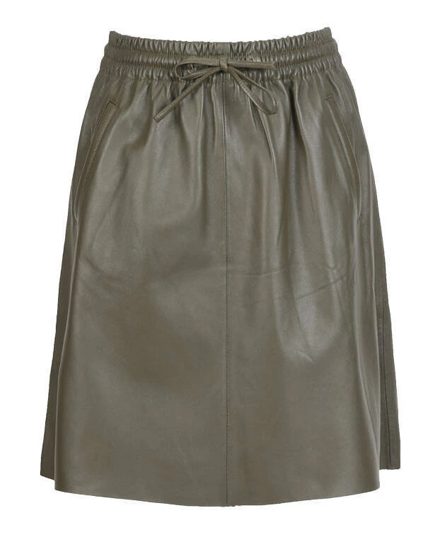 Jupe en cuir d’agneau de la collection Oakwood, on retrouve une coupe cintrée, dans un look tendance, avec sa taille élastique et ses poches biais .