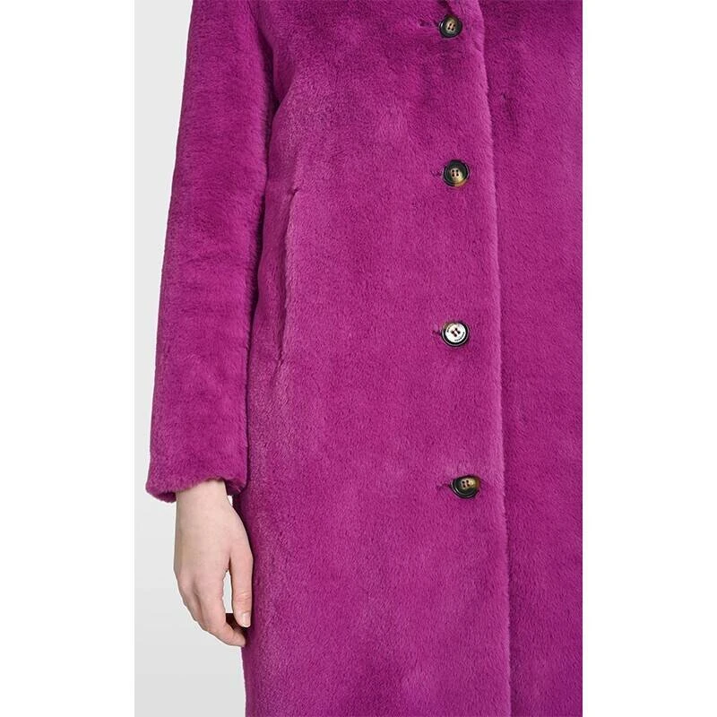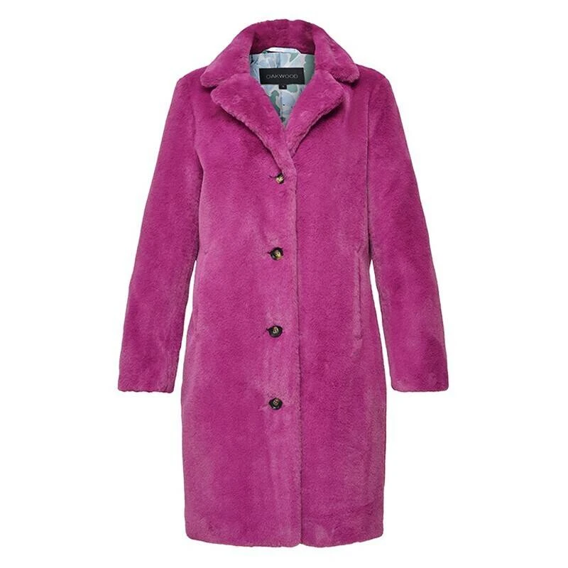 Très joli manteau long imitation fourrure pour femme de la marque Oakwood.Ce manteau , c’est du style et du réconfort en même temps, surtout pour la saison avec sa fausse fourrure qui est ultra douce et chaude ! La coupe est confort, vous avez un col à revers, une fermeture centrale à boutons , des poches biais, poches intérieures zippées, doublure.