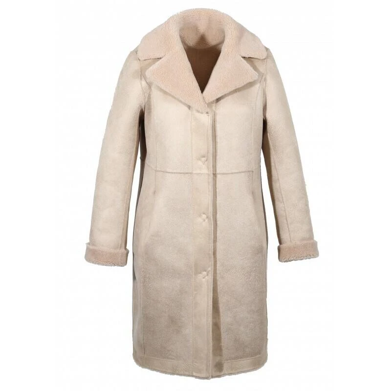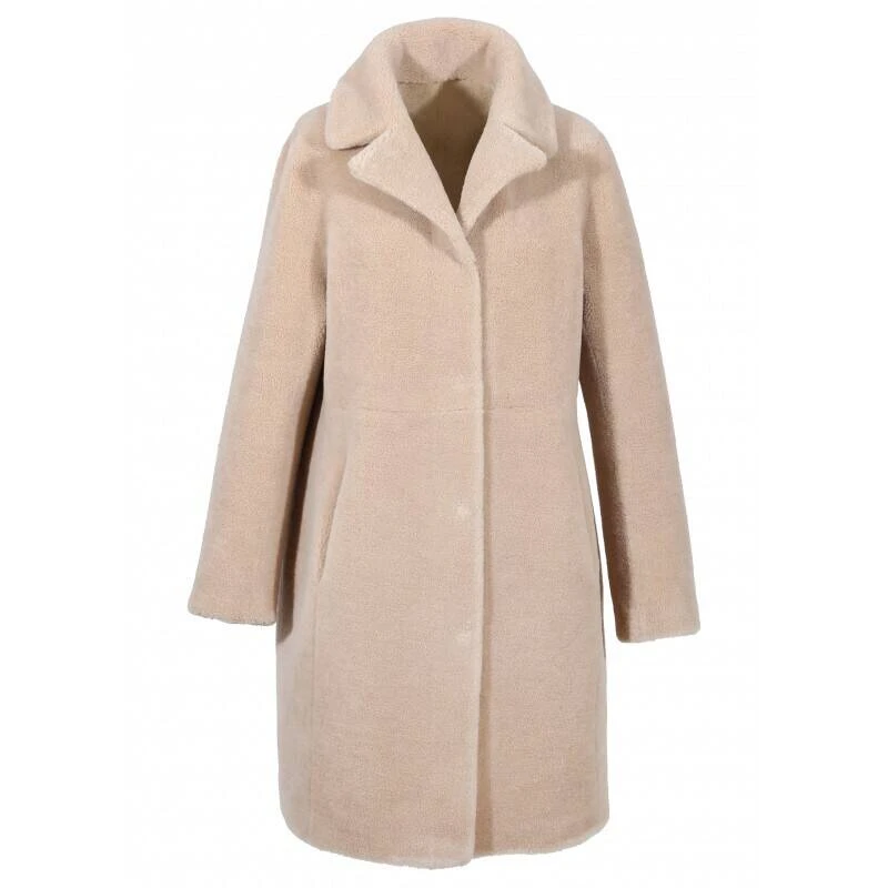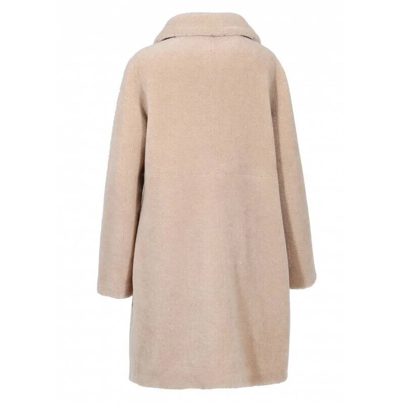 Manteau réversible 100 % laine pour femme de la marque Oakwood . On reste sur une coupe assez classique avec sa coupe droite et son petit col à revers. On aime sa matière effet mouton retourné 100% laine d’un côté et imitation peau de l’autre qui en fait un modèle original et tendance ! Ce manteau long se ferme facilement avec des pressions métallisées invisibles et vous gardera au chaud tout l’hiver. Ses poches en biais vous permettront également de protéger vos mains du froid en toutes circonstances. Il est réversible, il vous offre donc deux looks différents pour se marier encore plus facilement avec votre garde-robe.