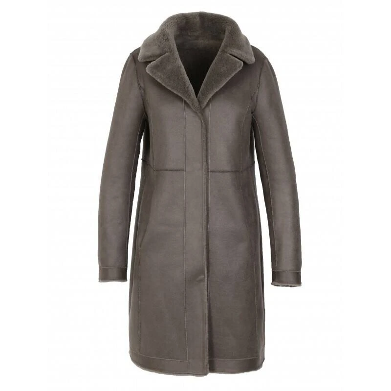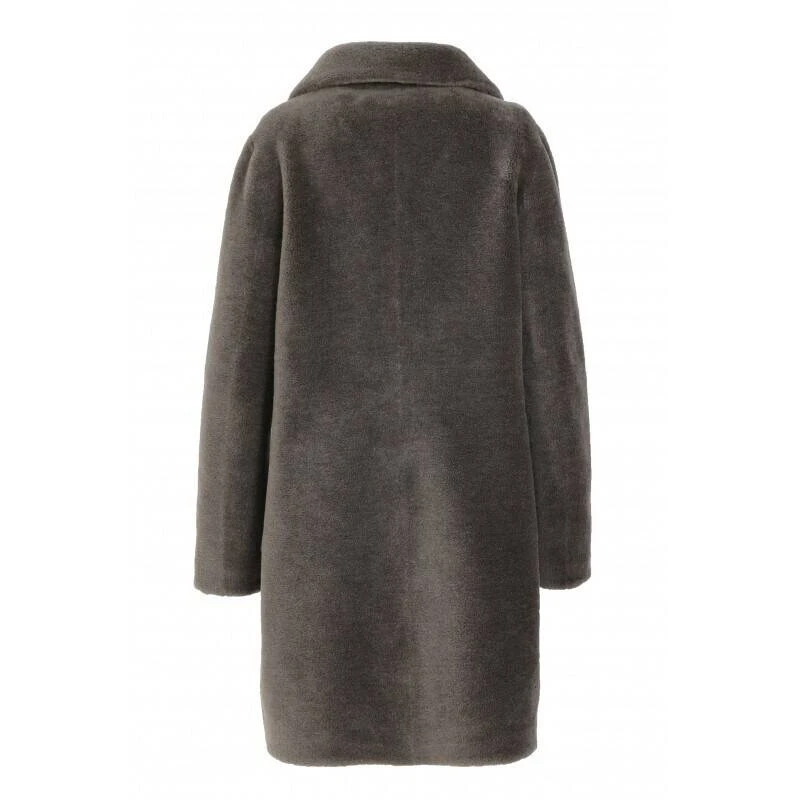 Manteau réversible 100 % laine pour femme de la marque Oakwood . On reste sur une coupe assez classique avec sa coupe droite et son petit col à revers. On aime sa matière effet mouton retourné 100% laine d’un côté et imitation peau de l’autre qui en fait un modèle original et tendance ! Ce manteau long se ferme facilement avec des pressions métallisées invisibles et vous gardera au chaud tout l’hiver. Ses poches en biais vous permettront également de protéger vos mains du froid en toutes circonstances. Il est réversible, il vous offre donc deux looks différents pour se marier encore plus facilement avec votre garde-robe.