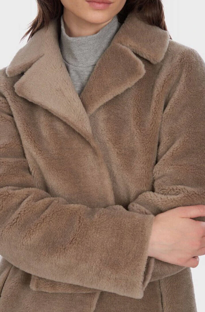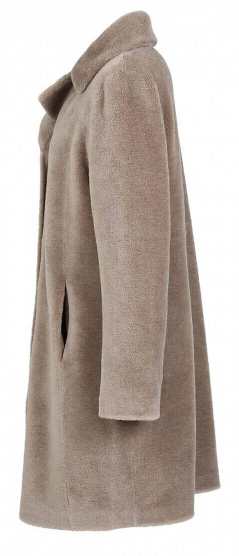 Manteau réversible 100 % laine pour femme de la marque Oakwood . On reste sur une coupe assez classique avec sa coupe droite et son petit col à revers. On aime sa matière effet mouton retourné 100% laine d’un côté et imitation peau de l’autre qui en fait un modèle original et tendance ! Ce manteau long se ferme facilement avec des pressions métallisées invisibles et vous gardera au chaud tout l’hiver. Ses poches en biais vous permettront également de protéger vos mains du froid en toutes circonstances. Il est réversible, il vous offre donc deux looks différents pour se marier encore plus facilement avec votre garde-robe.