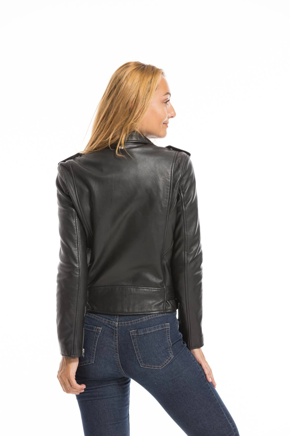 Le véritable perfecto ! Voici l’inconditionnel des vêtements cuir, le mythique perf, plébiscité par toutes les générations . Blouson en cuir d’agneau, assez souple, confortable, sa doublure est légèrement ouatinée. L’agneau est vraiment recherché pour son confort, il allie à merveille souplesse et douceur pour votre plus grand bonheur. Il se ferme à l’aide d’un zip asymétrique, forme légèrement galbée pour un peu plus de féminité. On craque vraiment pour son coté rock, super sympa à porter sur une robe, un jeans. Le Perfecto SCHOTT est fermé à la taille par une ceinture avec boucle. Vous avez un grand col tailleur à pressions, une poche zippée sur la poitrine et une petite poche à rabat pression .