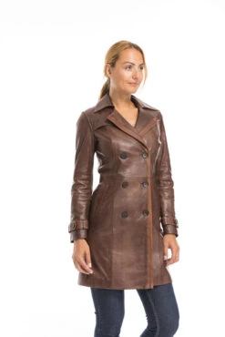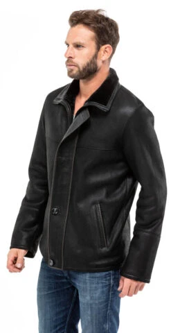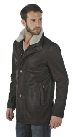 Trois Quart Cuir Homme Marron Vachette Timber Aspect Nubuck Classique Col Fourrure  » TYLER «Â