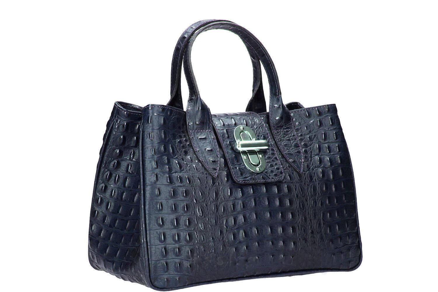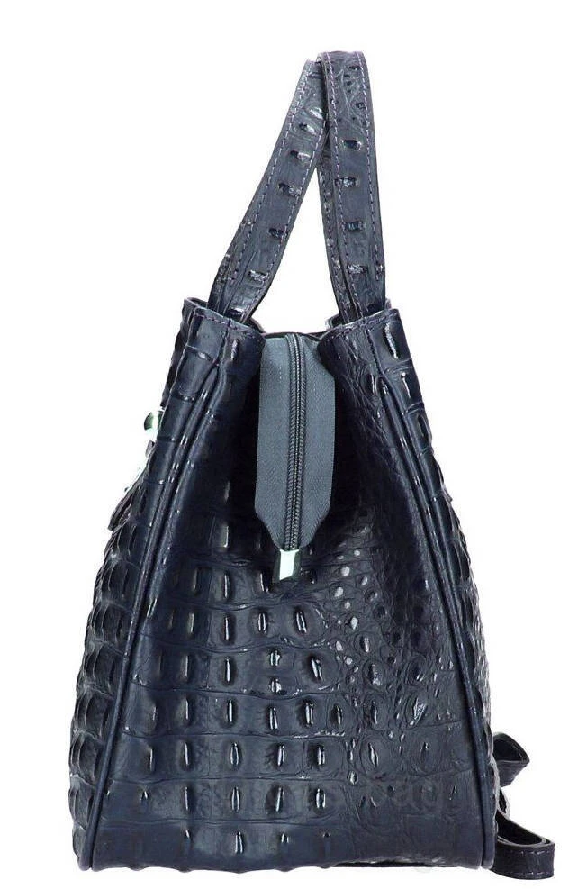 Sac à main en cuir véritable dans un look hors du commun avec son imprimé crocodile en cuir de veau véritable. Il possède une Fermeture éclair, ses accessoires sont en métal couleur nickel. Sa Structure est semi-rigide. A l’intérieur, on retrouve 1 poche pour téléphone portable, 1 Poche intérieure pour documents avec zip, 1 Compartiment double. Il est entièrement doublé en polyester. Sa bandoulière est amovible, comptez une hauteur de 24 pour une longueur de 36 cm et environ 17 cm de large.
