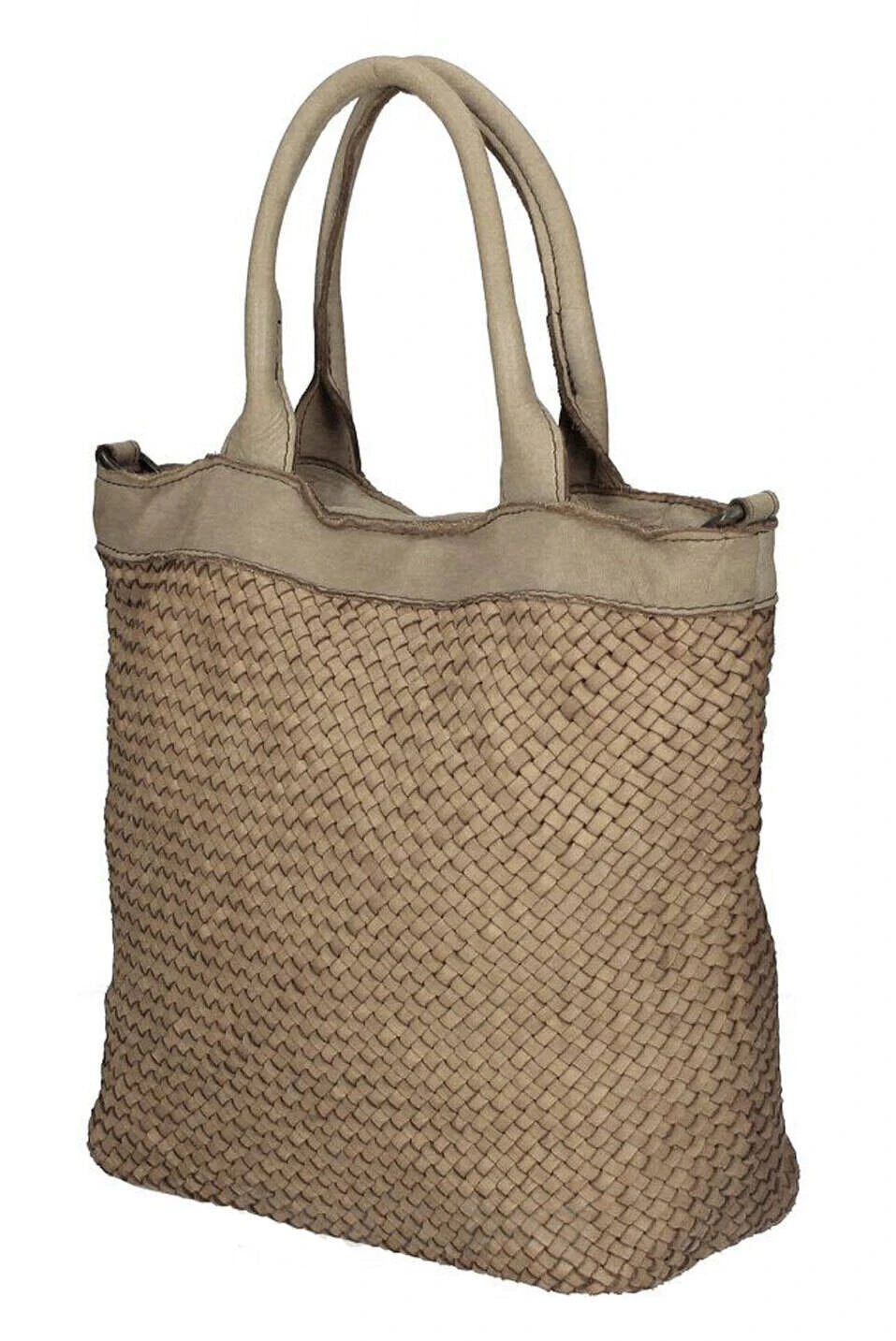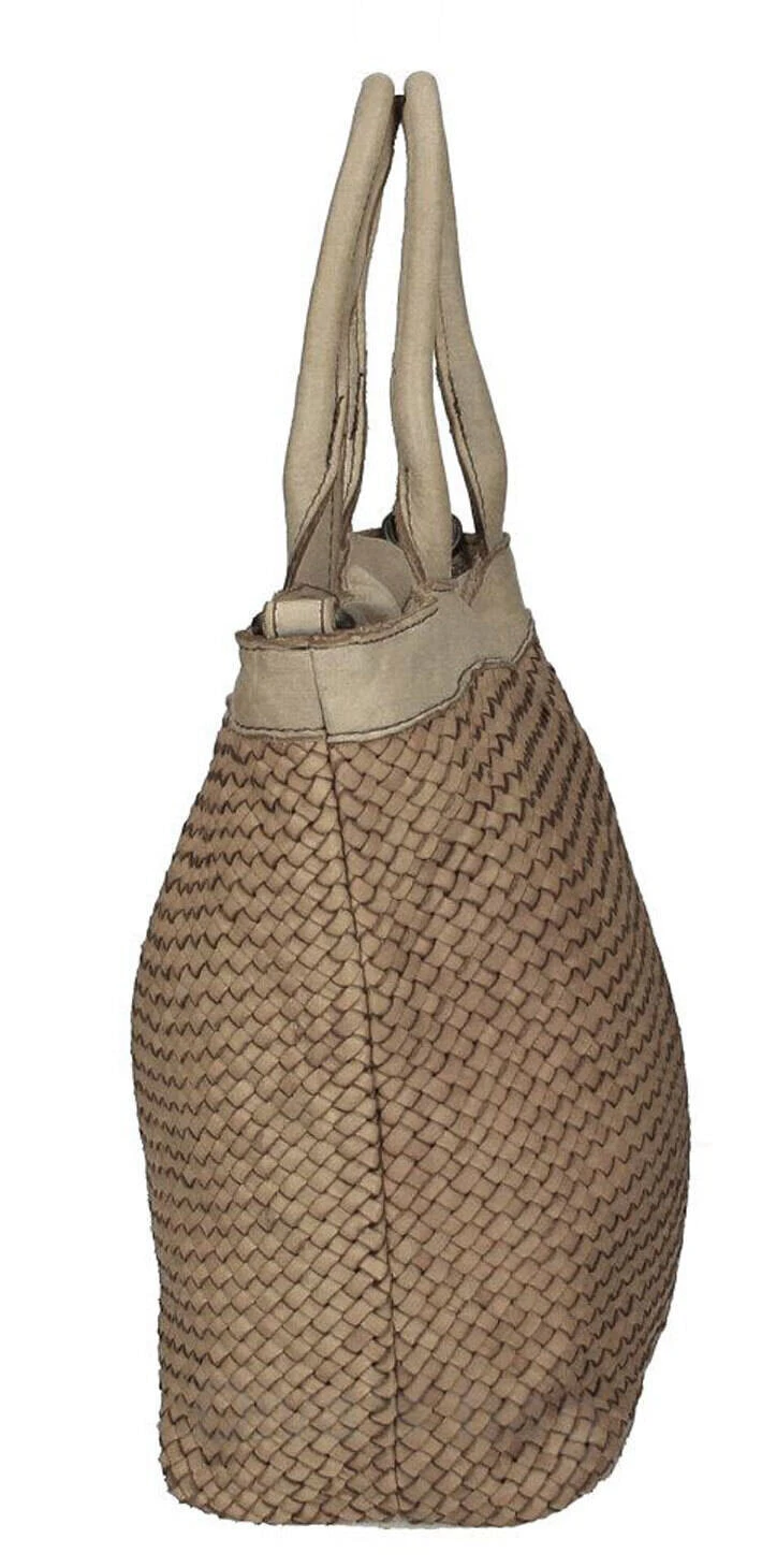 Sac à main en cuir de vachette tressé dans une forme seau en aspect vintage. Vous avez un grand compartiment unique avec une poche intérieure zippée, une poche pour le portable. Le sac possède une fermeture zippée, il est entièrement doublé en polyester . Vous avez deux anses fixes pour un porté épaule et si besoin vous avez en complément une bandoulière réglable amovible. Ses dimensions sont 25 cm de longueur , 26 cm de hauteur et 12 cm de profondeur , pour un poids d’environ 0.7 kg.