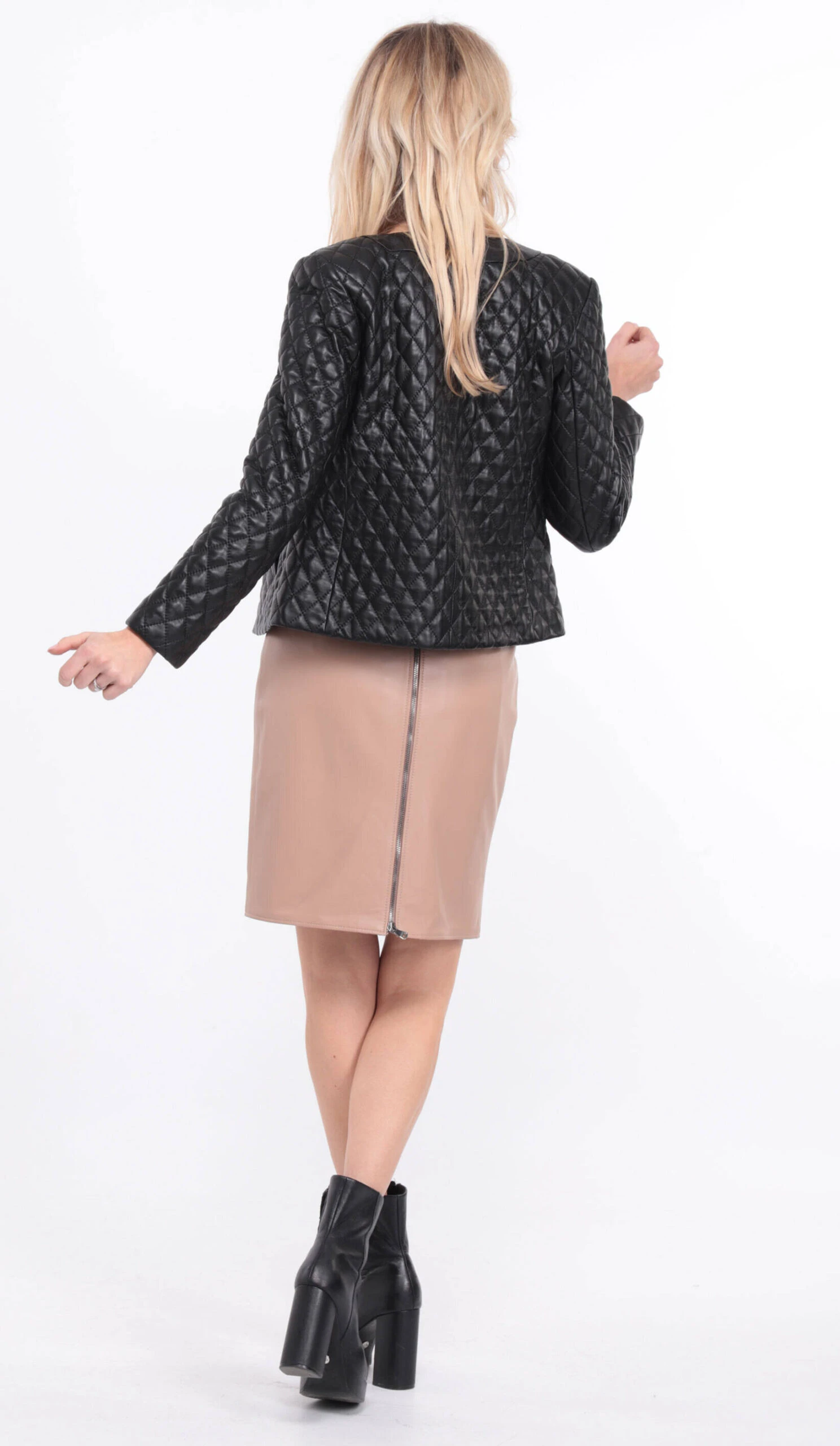 Spencer en cuir d’agneau pour femme, c’est le petit blouson sympa pour la mi saison ou à porter en veste d’intérieur. Vous n’avez pas de col , il se ferme à l’aide de boutons pressions, vous avez deux poches biais . Le cuir est vraiment souple et doux, on ne la sent pratiquement pas sur soi , elle est très sobre et s’adapte à tous les styles .