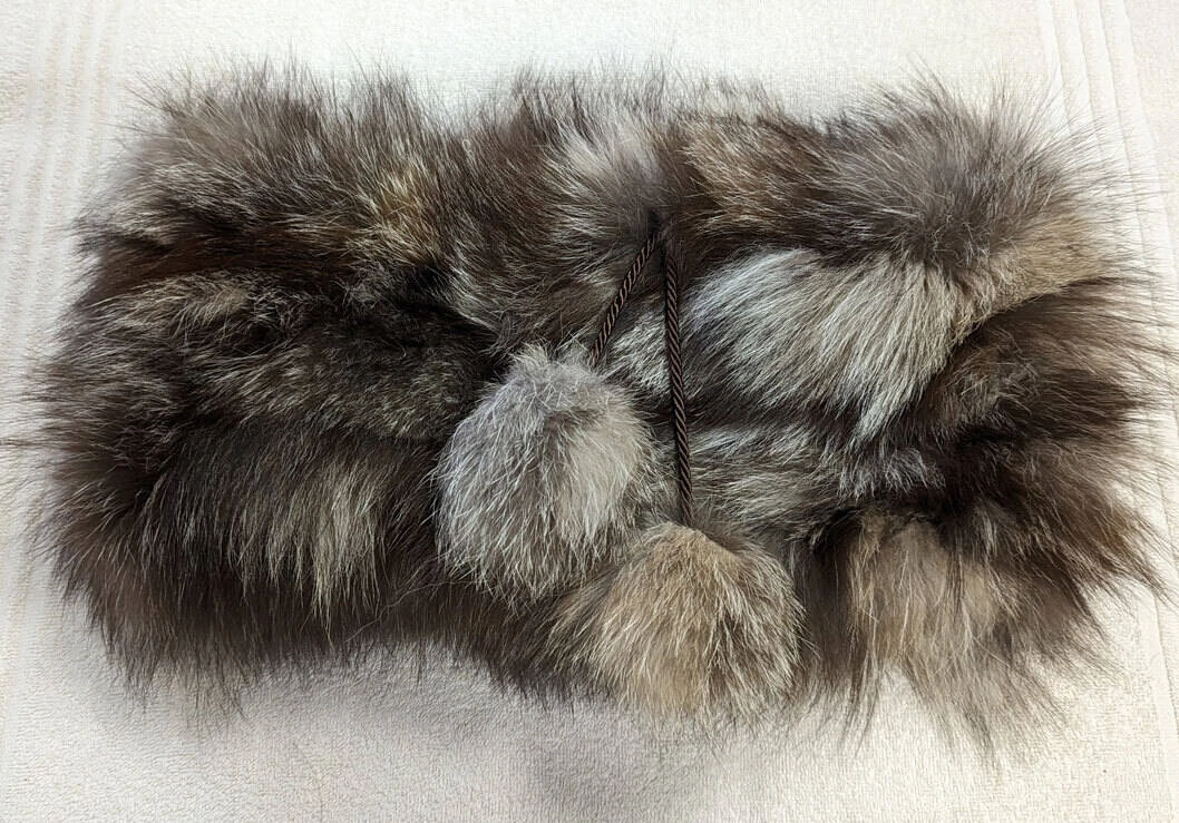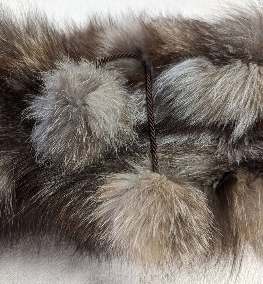 Tour de cou en fourrure de renard couleur crytal ( grise ) , vous avez deux pompon sur l’avant et un lien à l’intérieur vous pouvez ainsi resserrer le tour de cou