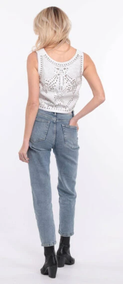 Chic, élégance, décrivent très bien cette veste en cuir souple . On lui retrouve une coupe assez classique dans un esprit blazer mais travaillé afin de le rendre beaucoup plus moderne. En effet, il est entièrement travaillé avec des surpiqures en damier qui lui donne plus de personnalité. On aime le mélange de coloris avec sa teinte bleu marine et ses petits détails marron, comme sur le col, sa pochette. Sa doublure est en viscose, très légère, confortable, son cuir d’agneau est de grande qualité, aspect mât. La veste cuir noir est donc très agréable à porter, elle suit parfaitement les mouvements du corps, on ne la sent pratiquement pas sur soi. Son col est très tendance, assez large mais porté relevé, pour un look plus cool, décontracté, de plus , sous le dessous , vous avez une patte avec boucle . La veste cuir se ferme par un zip qui est caché par une petit patte cuir à boutons pour plus de classe. Vous avez deux poches biais, pratique pour y glisser ses mains sans déformer la veste. Au niveau du dos, il y a une petite fente d’aisance. Sur le bas de manche, vous avez des petits boutons comme sur un blazer habillé. Vous la porterez donc aussi bien sur un pantalon stricte pour le travail, une sortie, que sur un jeans , une tenue casual, dans la vie de tous les jours. Comptez une longueur corps de 75 cms de la base du col au bas de la veste cuir.