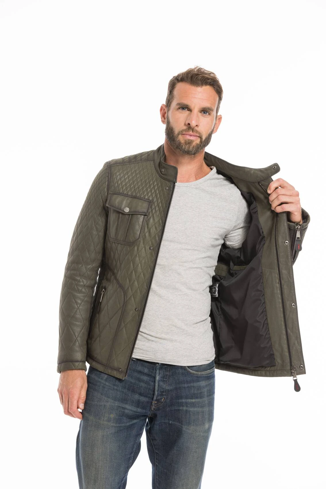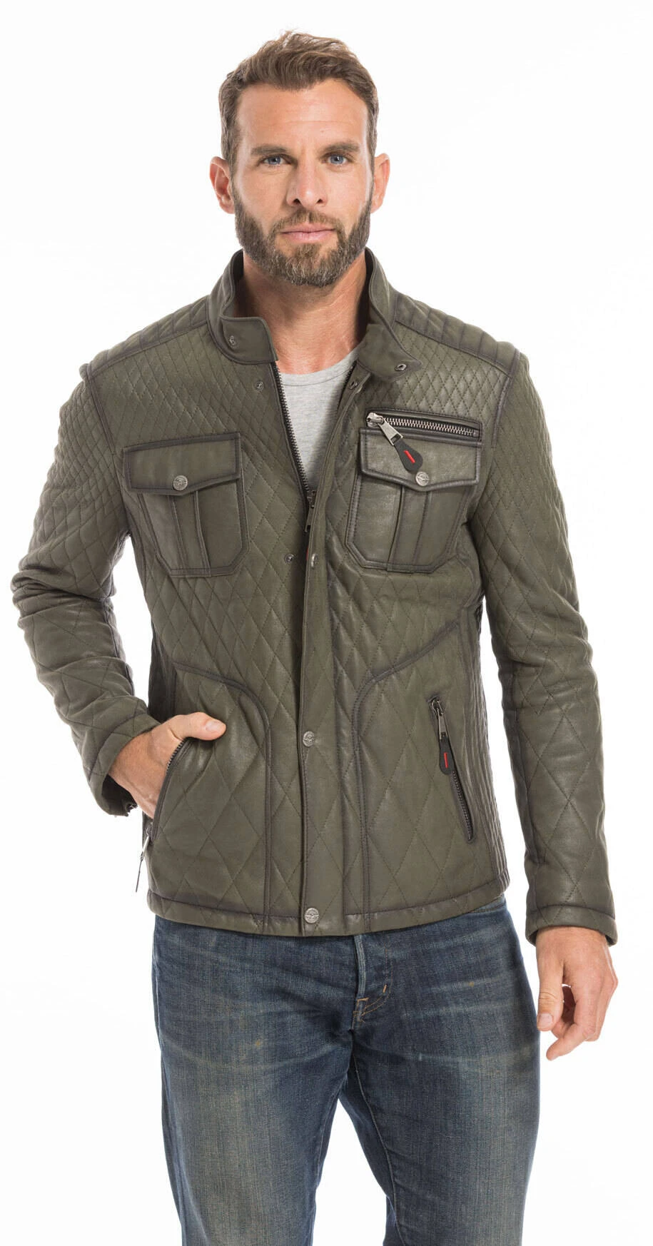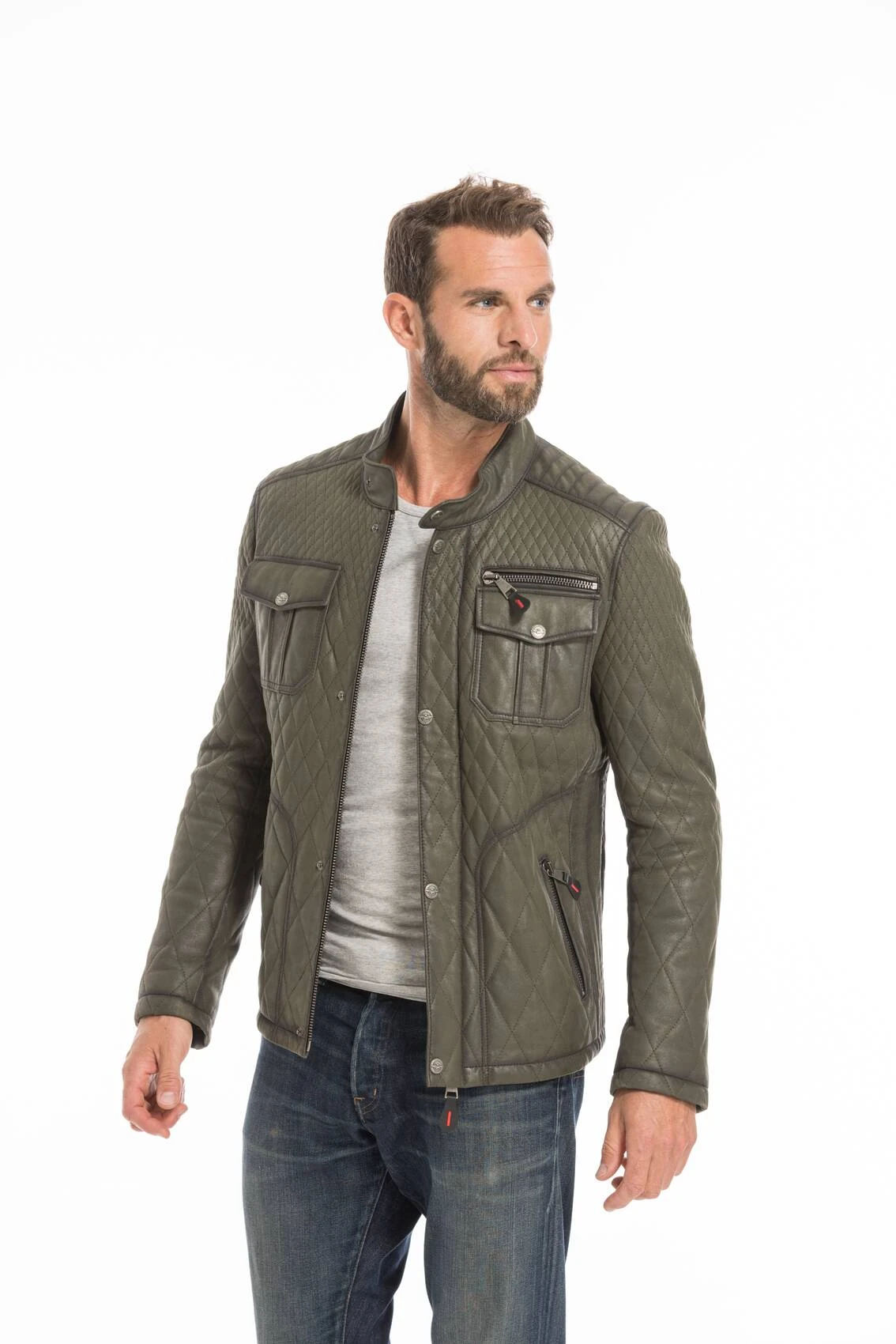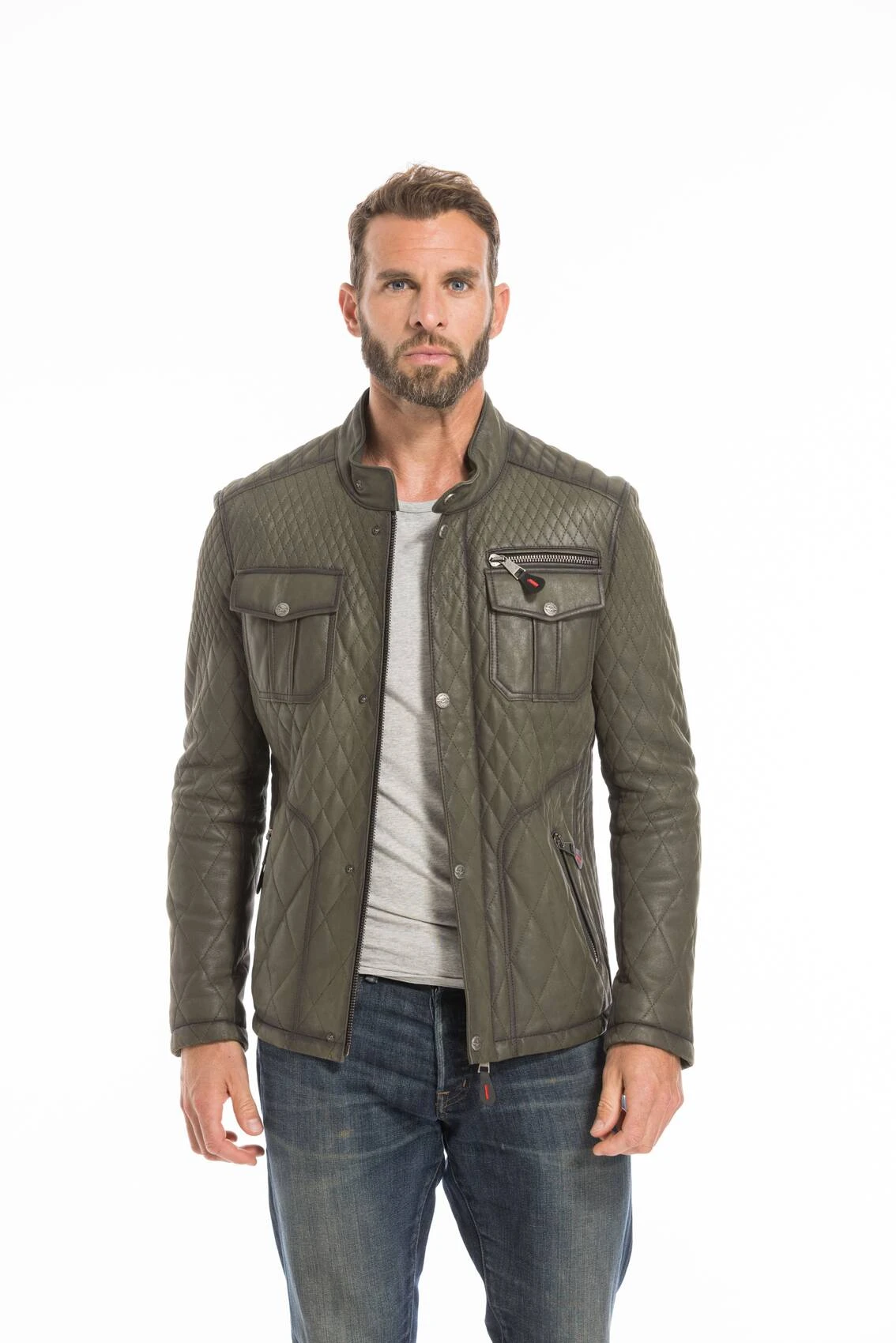 Veste chic , élégante en demi longueur pour homme . On aime ses surpiqures en damier , assez fines sur le haut du corps et plus large sur le bas . Elle possède un petit col montant à pression, se ferme à l’aide d’un zip droit caché par une patte cuir à pressions. Sur l’avant , il y a deux poches poitrine à rabat pression et une poche zippée, et également deux poches biais zippées. IL est entièrement doublé en polyester avec deux poches intérieures. Comptez une longueur corps de 66 cms sur la taille S